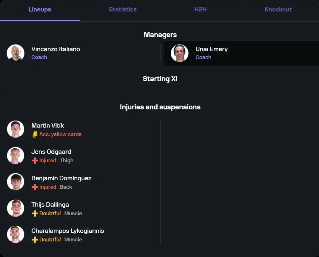 Về mặt dữ kiện đối đầu gần đây, Aston Villa từng thắng Bologna 1-0 ở giai đoạn league phase mùa này, cho thấy đại diện Anh phần nào biết cách giải bài toán chiến thuật từ đội bóng Ý. Đồng thời, UEFA xác nhận đây là cặp tứ kết của Europa League 2025/26, khiến áp lực chiến thuật và tâm lý còn lớn hơn rất nhiều so với một trận vòng bảng thông thường.