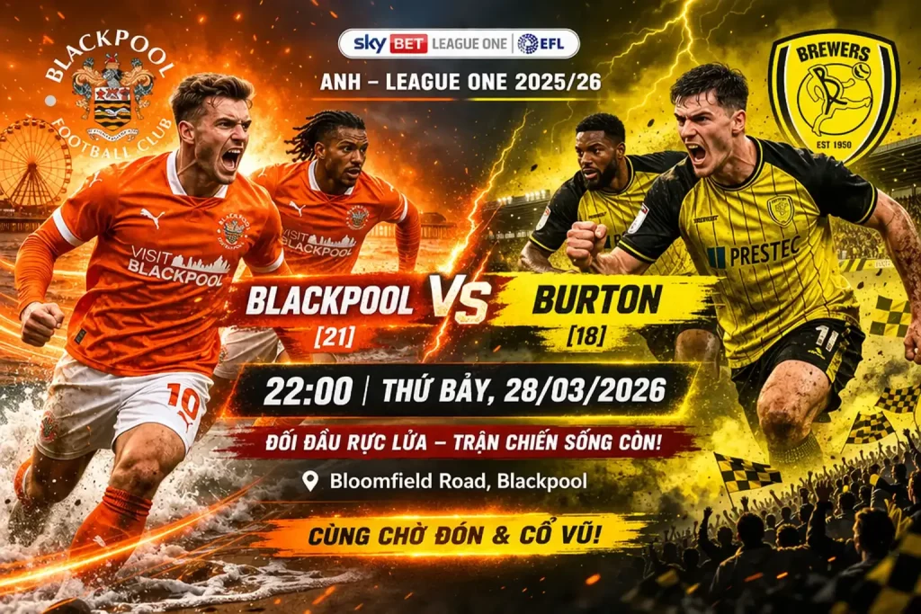 Trận đấu giữa Blackpool và Burton tại League One Anh diễn ra lúc 22:00 ngày 28/03/2026 là màn so tài rất đáng chú ý ở nhóm cuối bảng. Đây không phải cuộc đối đầu của những đội bóng đang đua vô địch, nhưng xét về độ căng thẳng, áp lực điểm số và tính chiến thuật, trận này hoàn toàn có thể mang tới sức hút lớn với giới mộ điệu cũng như người theo dõi keo nha cai. Khi Blackpool đang đứng thứ 21 còn Burton xếp thứ 18, khoảng cách thứ hạng tuy không quá lớn nhưng ý nghĩa của 3 điểm lại cực kỳ quan trọng trong cuộc chiến trụ hạng.