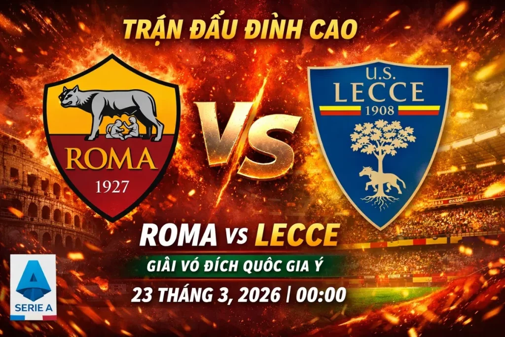 Cuộc đối đầu giữa Roma và Lecce trong khuôn khổ Serie A diễn ra vào ngày 23/03/2026 được đánh giá là trận đấu chênh lệch về đẳng cấp nhưng vẫn tiềm ẩn nhiều yếu tố bất ngờ. Đây là thời điểm quan trọng của mùa giải khi Roma đang cạnh tranh vị trí trong top dự cúp châu Âu, còn Lecce phải nỗ lực từng điểm số để tránh khu vực nguy hiểm.