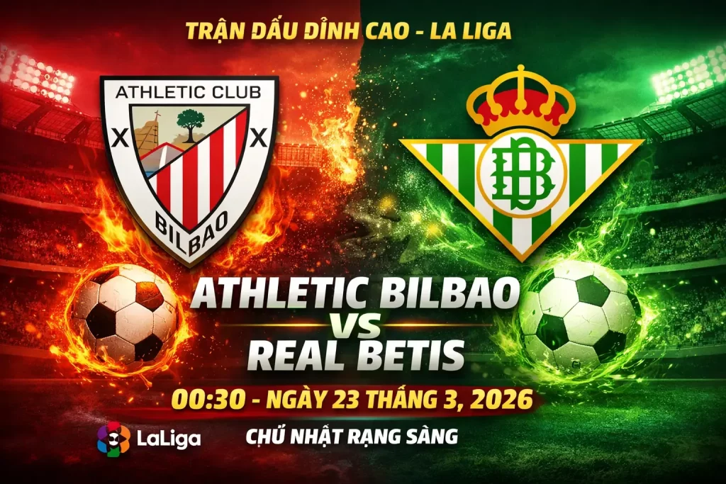 Cuộc chạm trán giữa Athletic Bilbao và Real Betis trong khuôn khổ La Liga vào ngày 23/03/2026 được đánh giá là một trong những trận cầu cân tài cân sức nhất vòng đấu. Cả hai đội đều đang cạnh tranh vị trí trong nhóm dự cúp châu Âu, khiến trận đấu này mang ý nghĩa cực kỳ quan trọng.