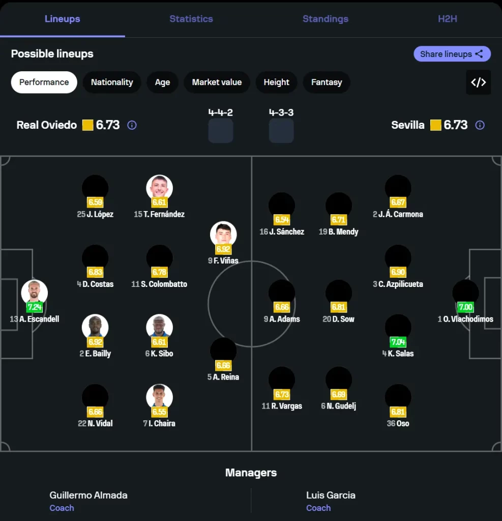 Mấu chốt với Royal Oviedo nằm ở hai hành lang cánh. Nếu các cầu thủ biên lên công về thủ hợp lý, đội chủ nhà sẽ tạo được thế cân bằng cần thiết. Ngược lại, nếu để lộ khoảng trống sau lưng hậu vệ biên, họ rất dễ bị Sevilla khai thác bằng các tình huống chồng biên hoặc những quả tạt có điểm rơi khó chịu.